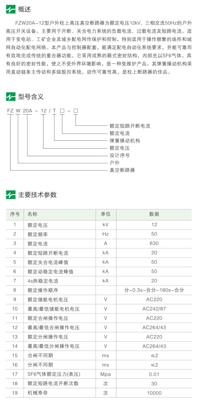 FZW20A-12系列户外高压真空断路器