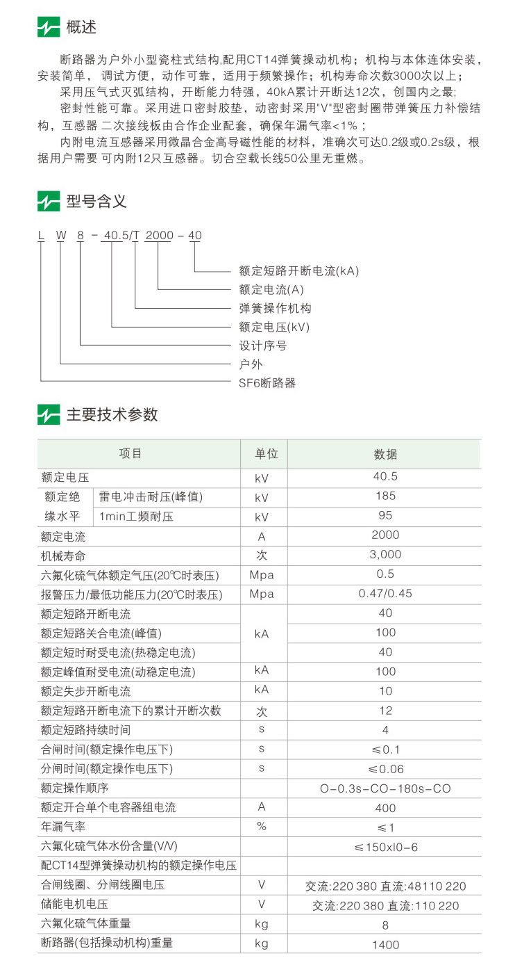 LW8-40.5200-40型户外高压交流六氟硫断路器
