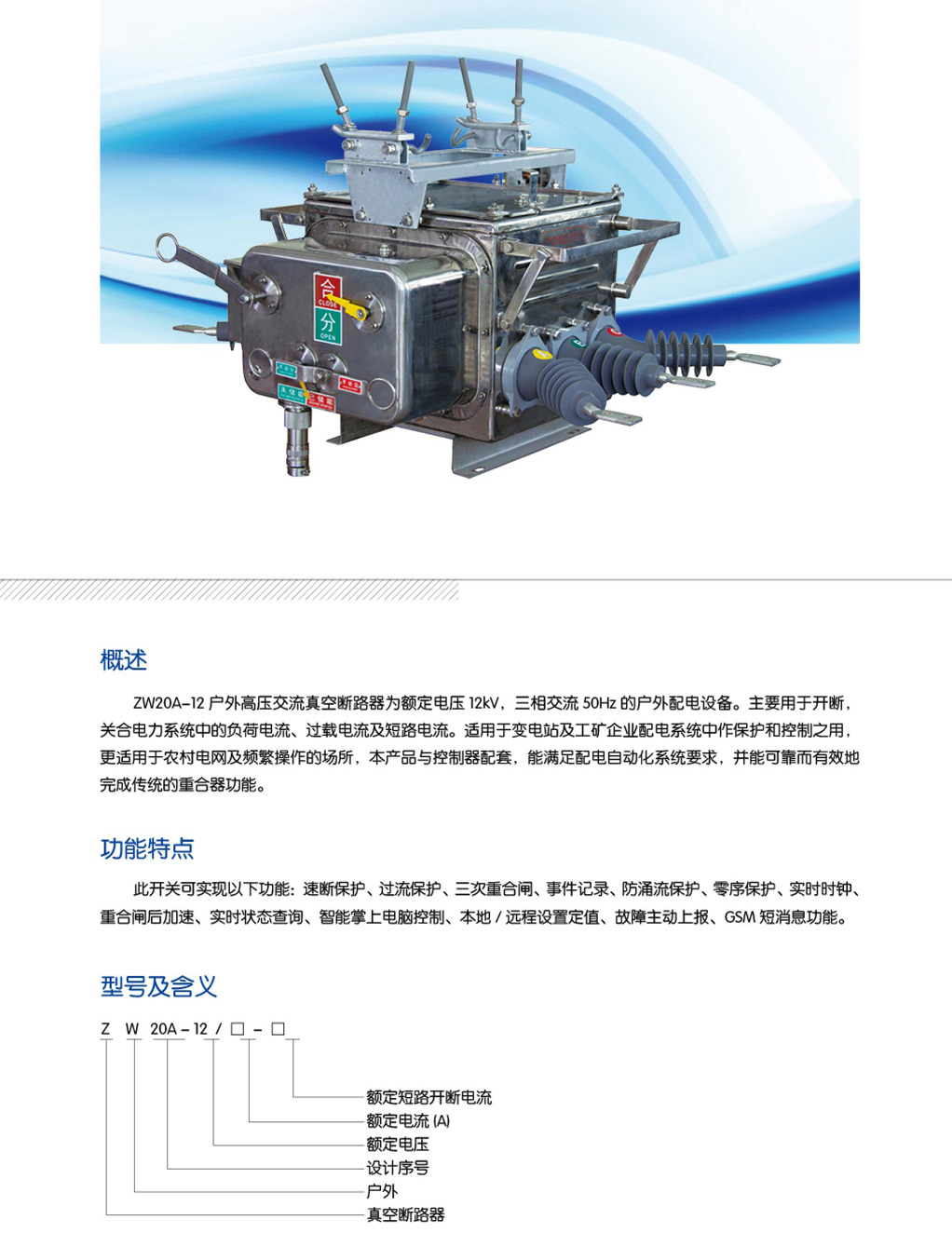 ZW20A-12户外高压真空断路器